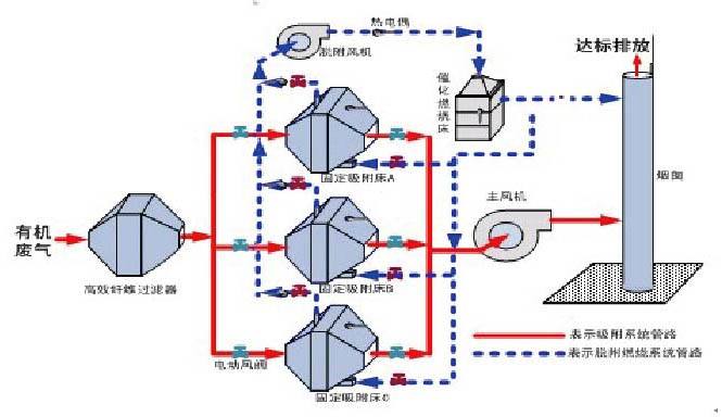 設(shè)備原理: 在催化劑的作用下,有機廢氣在較低的起燃溫度下(250~400℃),發(fā)生無焰燃燒,碳氫化合物被氧化分解為CO2和H2O,同時放出大量熱能,從而達到去除廢氣中的有機物的目的,該方法是凈化有機廢氣、消除惡臭的有效手段之一。 含VOCs的廢氣經(jīng)風機導入換熱器,經(jīng)由換熱器加熱后,再通過催化燃燒器,這時廢氣已被加熱至催化分解溫度,通過催化劑床,催化分解會釋放熱能,而VOCs被分解為二氧化碳及水。經(jīng)凈化后氣體溫度升高,再次進入換熱器與未經(jīng)處理的VOC廢氣進行熱交換,以此減少能源的消耗。后,凈化后的氣體從煙囪達標排放到大氣中。 催化劑:優(yōu)選貴金屬催化劑(Pt、Pd和Au),具有起燃溫度低(280℃起燃),去除效率高(>95%),具有較高催化活性,同時還耐高溫、抗氧化、耐腐蝕。催化劑改變化學反應速度而本身又不參與反應,反應前后基本沒有消耗,使用壽命長。 廢氣預處理:為了避免催化劑床層的堵塞和催化劑中毒,廢氣在進入床層之前必須進行預處理,以除去廢氣中的粉塵、液滴及催化劑的毒物。 預熱裝置:催化劑都有一個適宜的催化活性溫度,對催化燃燒來說稱為催化劑起燃溫度,必須使廢氣和床層的溫度達到起燃溫度才能進行催化燃燒。對于排出的廢氣本身溫度就較高的場合,如漆包線、絕緣材料、烤漆等烘干排氣,溫度可達300℃以上,則不必設(shè)置預熱裝置。